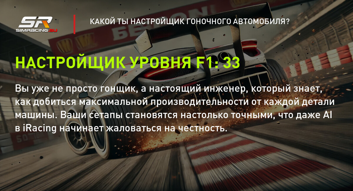 Это не просто тест - это возможность взглянуть на свои знания о технической стороне автоспорта под другим углом. Покажи себя как настройщик, который может превратить любую машину в победителя!