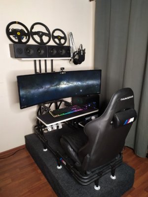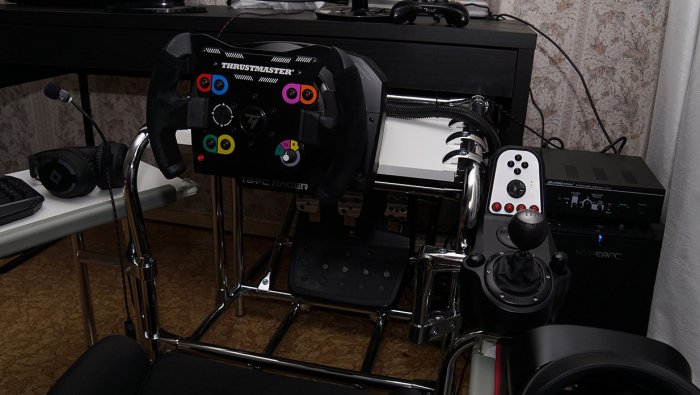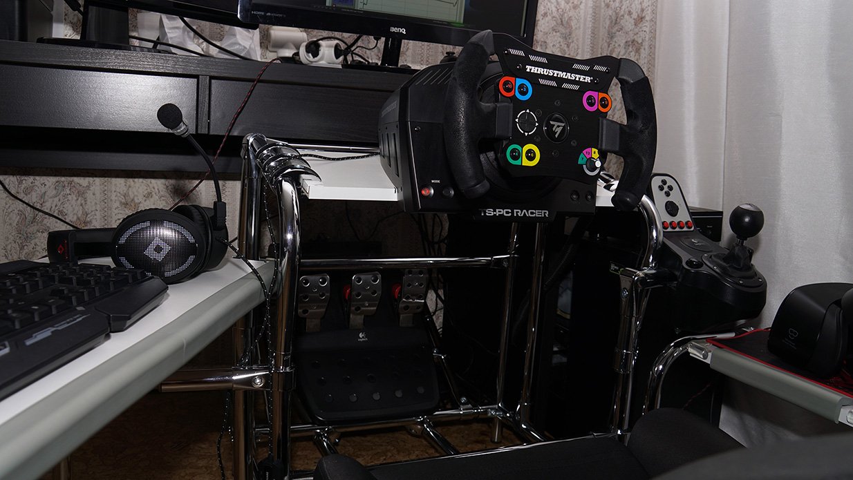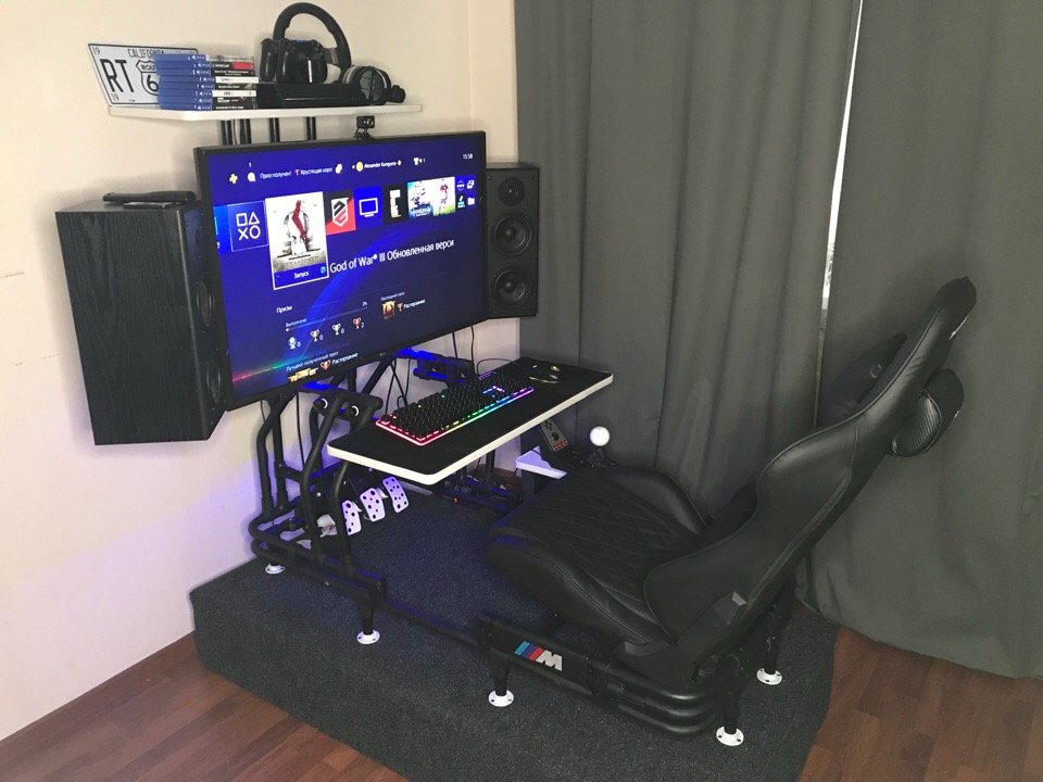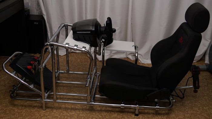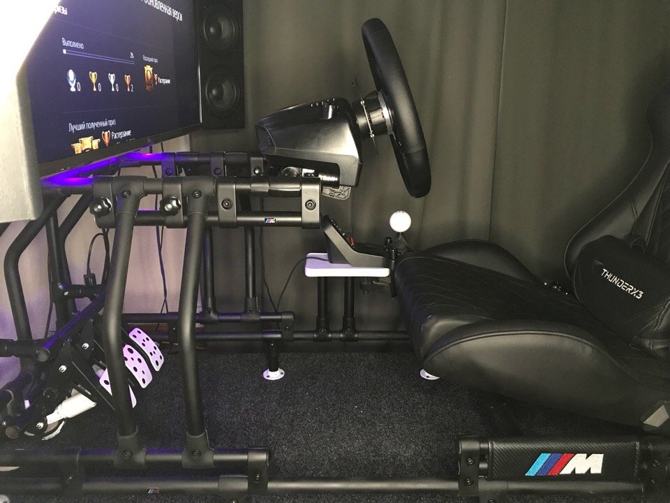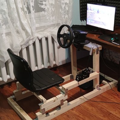 Знаю, вы не любите тут сварные конструкции, но я не прислушался и сварил железо за несколько дней) основа- профиль 50х50х3, железо по деньгам тысячи на полторы.Есть кое какие обходные технологии на от....сь, типа установка угла педалей к этой регулируемой базе, и крепление под моник,но это потому что я спешил успеть на кое- какую гонку, и потому что педали и устаовка мониторов будут следующими на очереди на модернизацию.Конструкция жесткая Большие хода регулировок, потому что у меня еще два мелких рейсера, которые руль выдирают. Хотел еще по высоте регулировку сделать,но понял что и так удобно и будет трата времени. С сиденьем не заморачивался,купил бу что попроще, потому что хочу в скором времени себе ковш сваять под свою жеппу,а это уйдет в мастерскую, так что нет смысла тратиться. Если чего надо приварить крепление под ручник и тд ,или отрезать ,можно какой-то сегмент утащить на работу и сделать,не тащить всю конструкцию.В итоге гонку я провалил,так как варил,а не готовился, да и непривычно,пока освоился на новом месте -пару раз успел разбиться))) с заглушками на торцах труб нормально смотрится,а то на фото обрезки какие-то11 баллов