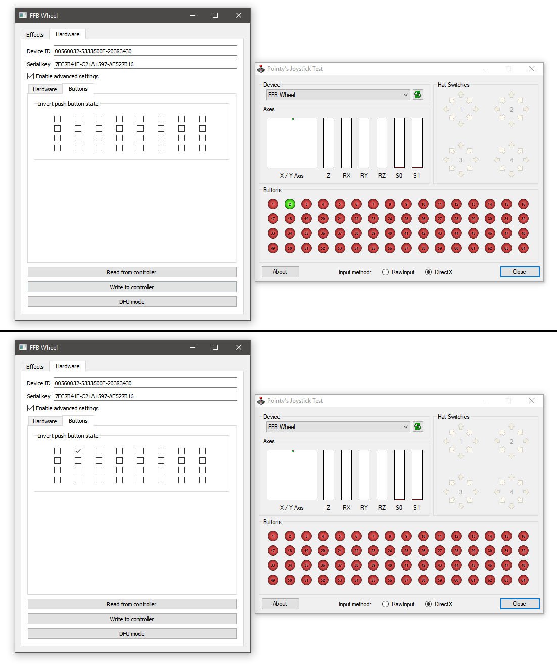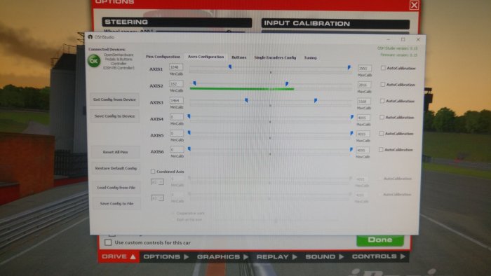 Обновил прошивку https://github.com/o-devices/bldc-ffb-wheel Добавлено: - поддержку сброса тока на тормозной резистор. Можно хоть через внешнюю платку хоть подключением тормозного резистора напрямую на тех одрайвах на которых етсь для него разьем(ODESC и двухосевой ODrive). У меня на одноосевом ODrive на внешней плате с резистором на 10 Ohm, с установленным лимитом торможения на 10% блок питания в защиту переходить перестал при максимальных скоростях вращения которые я могу создать руками. - поддержку рулей трастмастер (или 4х последовательно сдвиховых регистров аналогов CD4021). В интерфейс добавлена возможность инвертировать отдельные кнопки. Посколько трастовские баранки имеют в нескольких битах код - его надо инвертировать. Например картинка подключенной баранки F599XX без инверсии бита имеем постоянно зажатую кнопку, инвертировав бит все кнопки отжаты. - серийник сохраняеться. Теперь если раз ввести и сохранить в контролер при следующих запусках он на месте. З.Ы. Ну если какие баги будут пишите11 баллов