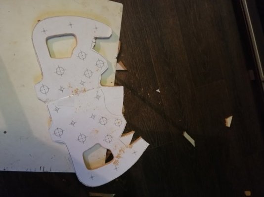 Для меня первоочередное - крепкая и достойно собранная механика. Выяснить, какая из схем будет самой лучшей, можно будет сравнив их. Но недостатки одной схемы или преимущества другой можно будет выявить только тогда, когда всё остальное будет работать безупречно. Тем временем вырезан комплект для сборки базы. Материал - АМГ 6мм. и 8мм. Плита основания - 6мм., перегородки - 8мм. Сразу запрессовал подшипники (7000104 craft 20x42x8). Так же выточены втулки с внутренней резьбой М5. Втулками будут соединятся перегородки в их верхней части. Крышки для подшипников - листовой АБС 3мм. В плите основания сразу подготовил отверстия М6 для крепления к ригу. Передние и два задних, что ближе к центру плиты повторяют расположение отверстий в базе G27. Так же в плите фрезерованы пазы глубиной 1мм. для установки и чёткого позиционирования перегородок. Крепится они будут в торец через отверстие в плите основания винтами М4 с потайной головкой. В торцах деталей сразу подготовил отверстия. На этой детали будет установлен двигатель. Резал все детали самостоятельно, на совсем простом ЧПУ станочке. Станок совсем не новый и совсем не для металлообработки. Когда я сообщил, фрезеровщику, что собираюсь резать на этом станке алюминий толщиной 8мм., он сначала подумал, что я шучу, а потом немного занервничал, потому что шучу я редко и плохо. В итоге он поверил в меня, а я поверил в наш китайский станок и фрезу того же происхождения. Немного технической информации про режимы резания: фреза 3.175мм. однозаходная. Шпиндель 9000 RPM, подача 900 mm/min. Черновая обработка 1мм. за проход. Припуск на чистовую - 0.15 на сторону. Чистовая на всю глубину. СОЖ - керосиновая капельница прямо под фрезу. На детали перегородок хватило заготовки 250х200мм. Ни одна фреза не пострадала. Продолжение уже завтра.13 баллов