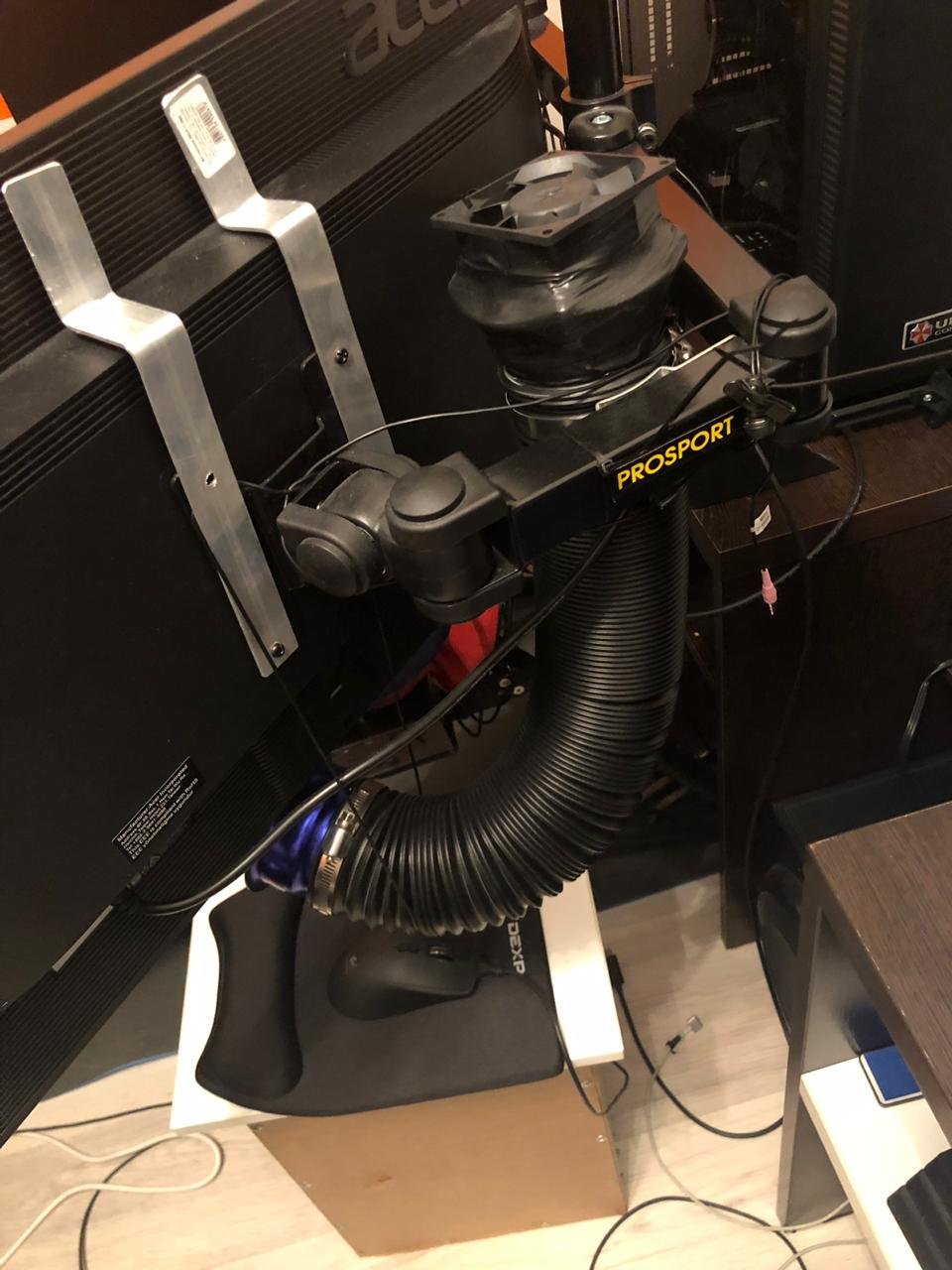 Спорить и влезать не буду - но не все так просто как кажется на первый взгляд ). Я собрал два комплекта ветродуев )) оба комплекта по два вентелятора, но они концептуально разные ! Начнем с первого : 1. Это два вентелятора FanOVER - на картинках найдет точную модель, я долго выбирал и нашел самые тихие. Затем я решил не делать чистый симулятор ветра а сделать принудительный и купив самый простой регулятор как выше в постах было приведено на него соеденил провода от вентелторов и купив блок питания обыкновенный штекерный за шапку сухарей все заработало как надо! , но стала проблема как все крепить и как самое главное красиво подавать воздух туда куда нужно ) и еще и с двух сторон ! - сразу скажу с одним можно даже не заморачиваться чистый трешь ) и вам будет мало особенно в шлемах!я долго искал решения и вдруг меня осенило ) - вам нужен магазин про спорт и вы покупаете эти красивые трубки с нулевых фильтров по 600р - оставалось установить вентеляторы на трубах все просто черная изолента и все ! ) дешово и сердито главное практично ) , что касатеся чистого обнува двумя вентеляторами то вполне сносно плюс не так шумно - работают на 20% и могут работать очень долго ... Бюджет вышел с покупкой в россии !!! (вентеляторы по 700р =1400, трубки по 600р = 1200 , блок питания 250 р, регулятор с коробочкой 600р итого 3450 р) изолента и работа 1 час ) бесплатно Но мне хотелось большего как и в плане очущений так и резкости в потоке воздуха и главное именно симуялтор ветра управляемый и эта задачка оказалась не такой простой как описывается во многих гайдах !!! Я нашел основную информацию на сайте Iracing на форумах , плюс тут на сайте Симрейсинг - но это было только начало казалось бы на первый взгляд простой задачей только с другими компелктующими ! 2.Во первых первая проблема это правильный выбор поточного вентелятора - не буду спорить доказывать - но мой выбор пал на вентелторы - модель есть внизу (12в) 4,5А - почему этот все просто слишком большой ток на два это 10 А плюс 12в - блоки питания не дешовые, а качественные так вообще космос ))) - во первых блоки свистят - они сука все китайские - я менял 3 блока ... не приятный зуд и свит , дальше проблема стала в платах адруино и больше всего в шилдах - шилд нужен двойной их очень много брака менял аж 3 штуки - по факту просто выкидывал бабосы - по этому покупать только с гарантией в россии - с адруиной проблем не было купил на ебеи - и вот казалось все готово оставалось подсоеденить и готово! ) но не тут то было - во первых если вы хотите взять такие на обдув важно подобрать кабель так как ток постоянный и все будет грется .... Затем проблема возникнет с с шилдом адруины, и ваши вентеляторы начнут пищать! - эту проблему я решал через редактирвоание определнных файлов в программе ветродуй на симхабе .... но решив проблему с писком вентелторов без нагрузки началась проблема с блоком питания - там поднимать частоту нужно было - итог я выкинул на хрен это блок питания и поставил блок питания от старого компьютера - убив сразу всех зайцев и с корпусом и и писком и кабелем ))) - но проблема коробочки адруино и шилдов осталась - пришлось делать коробочку и ставить на плату обдув и радиаторы после чего все заработало ! ) - бюджет в россии ( вентеляторы - по 2300 = 4600 , блок питания на авито 1000р, адруино - 500 рублей , мотершилд - 900 , обув платы -200р - радиаторы 200 р - 7400 + куча гемороя - результат бесц