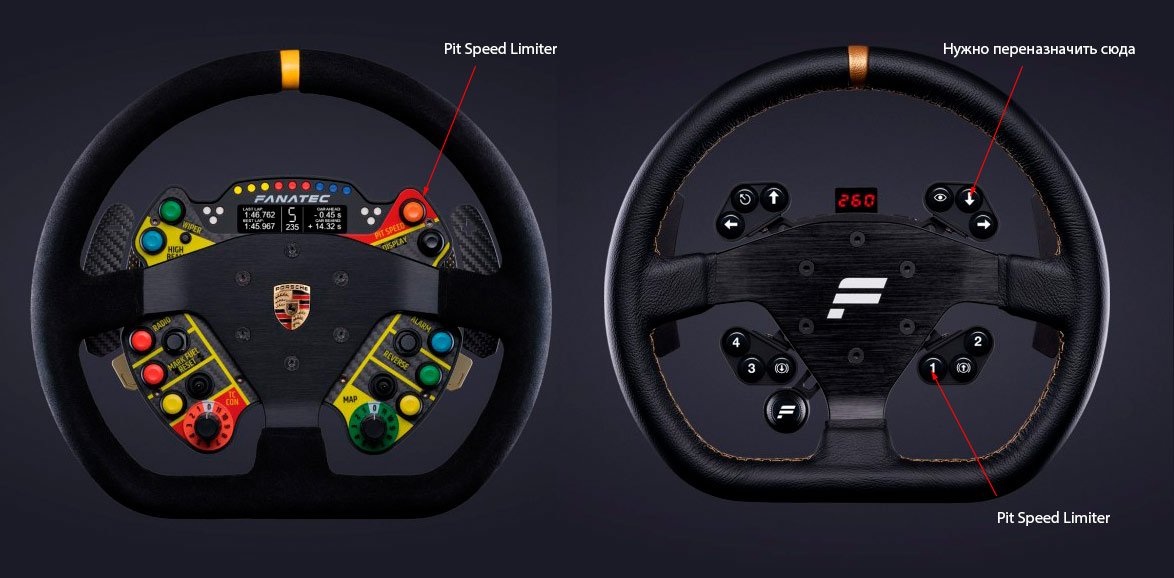 Есть ли какой способ переназначать кнопки на рулях Fanatec? Объясню на примере двух. Основной руль у меня с Podium Button Module и во всех симах все кнопки назначены примерно одинаково под этот руль, например, PitSpeed Limiter - оранжевая справа сверху, но если я подключаю другой руль с Universal Hub, то все кнопки съезжают, та же PitSpeed Limiter оказывается совсем в другом месте. Понятно, что количество кнопок на рулях разное, но хотелось бы чтобы примерно функции кнопок находились в тех же областях рулей. Так это выглядит: Видел что у Simagic можно переназначать ID каждой кнопки как угодно чтобы в симах каждый раз не делать переназначения при каждой смене руля. Надеялся что FanaLab такое может, но не нашел такого функционала.