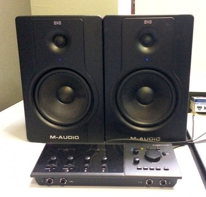2. Продам Студийные мониторы M-Audio BX8 D2 Тип: активные двухполосные студийные мониторы, пара Динамики: НЧ-8", ВЧ-1,1/4" Мощность НЧ усилителя: 70 Вт Мощность ВЧ усилителя: 60 Вт Частотный диапазон: 40 Гц-22 кГц Входы: балансный XLR и балансный/ Вес 26,4 кг / одна единица — 11,97 кг Состояние отличное 21000 руб. USB аудиоинтерфейс M-Audio FastTrask C600 Технические характеристики: 4 mic/line комбинированных предусилителей на задней панели Два 1/4" инструментальных входа на передней панели 20 dB pad на каждый предусилитель для захвата сигналов без искажений Фантомное питание для конденсаторных микрофонов 6 балансных аналоговых выхода с системой управления мониторингом 2 выхода на наушники с регулятором громкости S/PDIF (coax) вход/выход 1x1 MIDI вход/выход 11000 руб Если сразу комплектом, то за 30000 р.