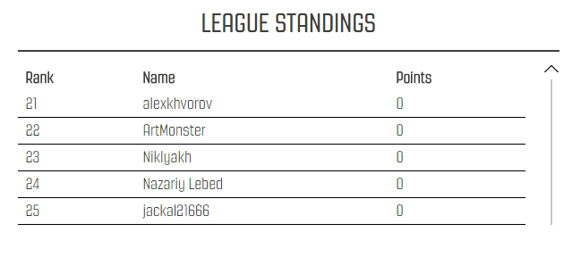 Странная вещь в Лиге. Нас 25 участников, а по списку смотрю - всего 23. В списке отсутствуют игроки под номером 19 и 20. Марат, ты как создатель Лиги, у тебя тоже самое?