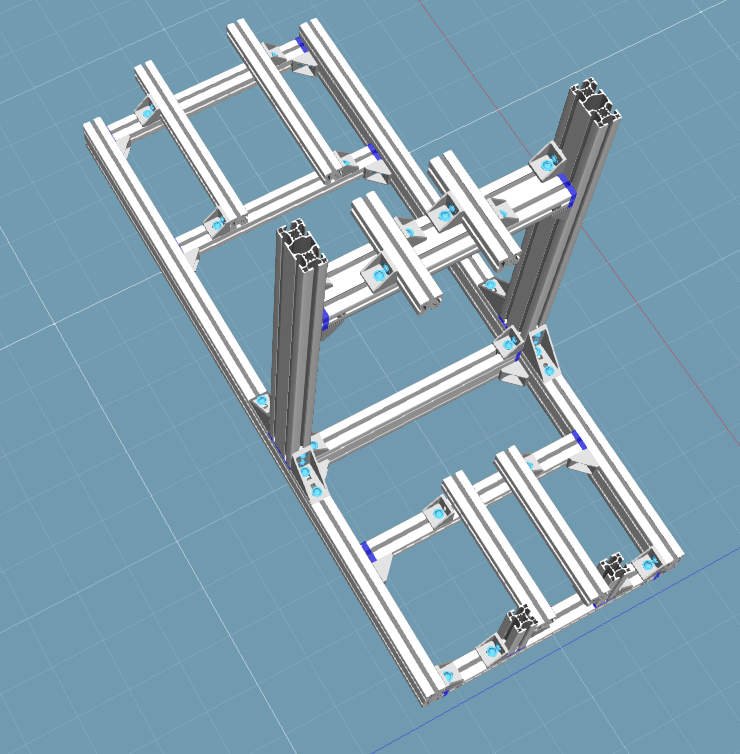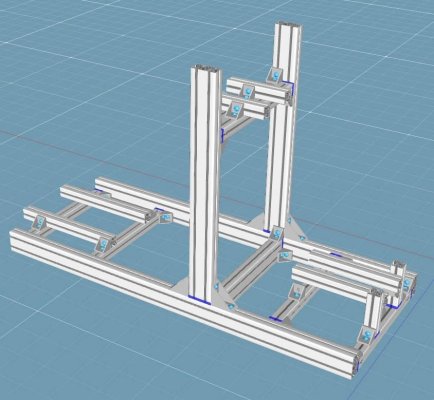 Первая версия: Сначала найду сиденье, потом буду под него корректировать. Возможно 2 куска профиля 40x40 под сиденьем окажутся лишними. Рост 185 см. Длина рига 120 см, учитывая возможность сдвинуть назад кресло на салазках, должно хватить. Ширина 53 см, расстояние между стойками - 45 см. Высота стоек 40x80 - 75 см. Крепеж: 30 уголков 40x40 и 4шт 40x80, Т-гайки и болты М8 - 76 шт. + будут держатели для клавиатуры и мыши. В целом ничего нового не придумал, старался нарисовать минималистично, но не в ущерб функциональности. 2 отрезка профиля на рулевой стойке для крепежа accuforce в будущем, не посчитал еще 4 уголка. Руль G27 будет крепиться к профилю 40x80 посредством деревянной переходной плиты. Т.к. струбцины давно поломаны, база крепится на 4 болта (2 из которых не в штатных точках), а точки крепления образуют трапецию.
