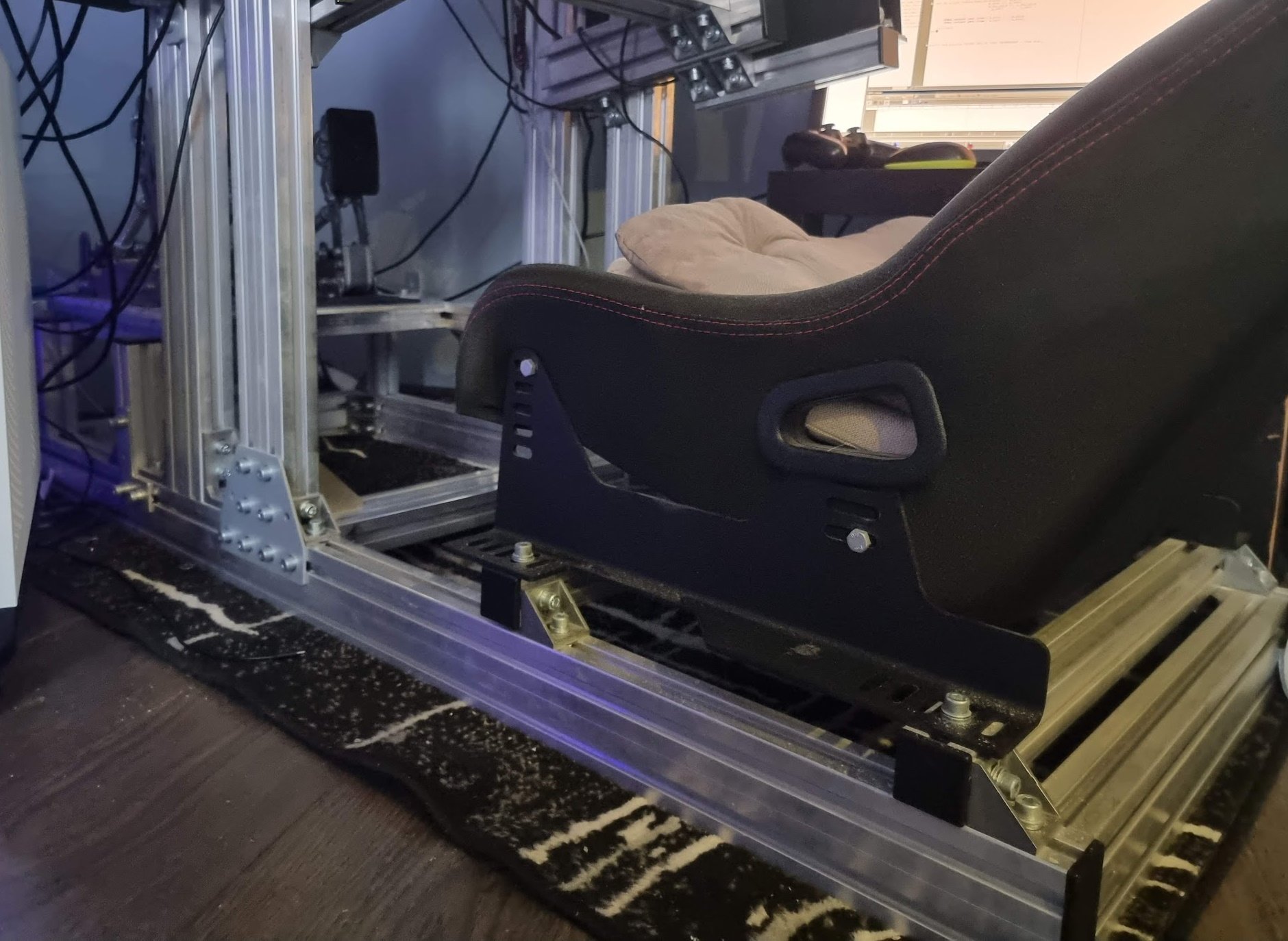 15. @Mutabor У меня вот так. Педали пришлось поднимать все равно. А если использовать 120 или 160 основание то получишь и более высокое кресло и на порядок более крепкий кокпит. Ну и да педали на уровне жопы удобнее давить на больших усилиях