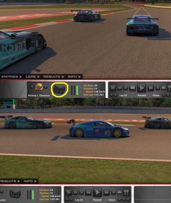 Мой идеальный вариант квалы: 1. Общая. 2. Ограниченное количество кругов 3. Продолжительность по времени в 2-4 раза больше, чем надо на прохождение этих кругов. 4. При вылете, только буксирова до боксов, если успеешь. Никаких ESC. Не уверен, что это реализуемо в автоматическом варианте иРасингом. В обычной общей квале есть конечно недостатки (особенно для чистых спортсменов), но общая квала сильно веселее.
