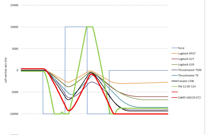 1. кто б дал мне двигатель с идеальными скоростными характеристиками? )) 2. а по существу - высокая скорость - показатель "пологости" механической характеристики привода, т.е. на небольших скоростях вращения крутящий момент падает незначительно, т.е. быстрый руль умеет и тянуть и крутить одновременно к примеру какой нибудь G27, с максимальной скоростью чуть больше 1 оборота в секунду - при вращении по направлению FFB со скоростью 0.5 оборота в секунду выдаст всего лишь половину своего крутящего момента... быстрый DD же может крутить и тянуть одновременно... причем сила FFB не сильно зависит от того что мы делаем с рулем - держим/крутим/рывком дергаем и т.д. 3. с большой и тяжелой инертной баранкой скорость работы упадет, на видео лёгкий пластиковый штурвал 280 мм 4. момент и скорость руля всегда можно убавить, я на видео показал "максимальные возможности"