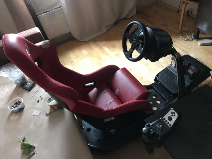 Руль в состоянии нового, времени нет катать, педалям много лет, но работают идеально, кпп и все остальное исправно служит (правда, слишком редко)