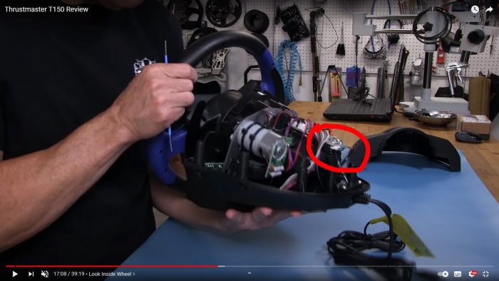 Нет, на T150 нет системы смены рулей. Саму базу и руль, как я уже говорил, соединяет небольшой шлейф (фото подробней выложу через пару дней, когда буду снова разбирать руль) который одинаковый с обоих концов. Если на самой базе провод крепится стяжками, то на самом руле вход токлом не фиксируется (что я считаю лютым просчетом, неужели трудно было сделать контакт с защёлкой)