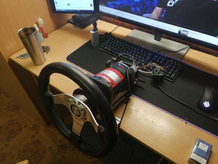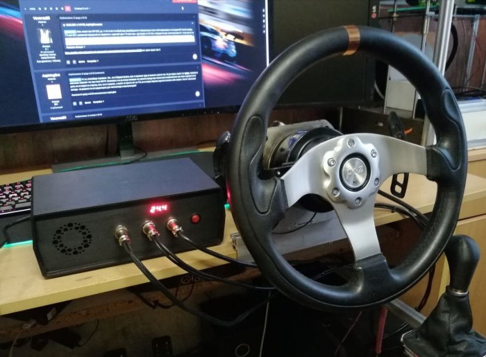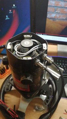 Мой первый ДД , очень клевый движок , никаких тебе шкивов , подшипников и тд , шума ноль , энкодер стал на место пульскодера как родной (правда пришлось печатнуть переходник , стм привинтил прям к корпусу мотора , переходник для баранки от Тойота Селика отлично себя чувствует на валу мотора , спасибо Volvox за мини обзор мотора , я бы сам наверное никогда не решился , впереди множество доработок но уже можно гонять )