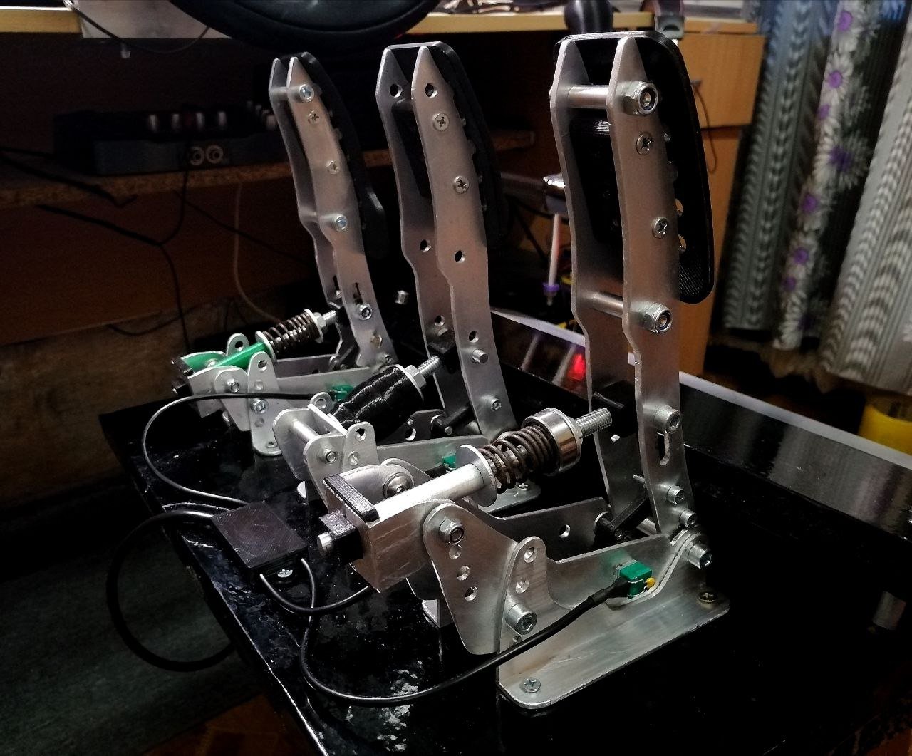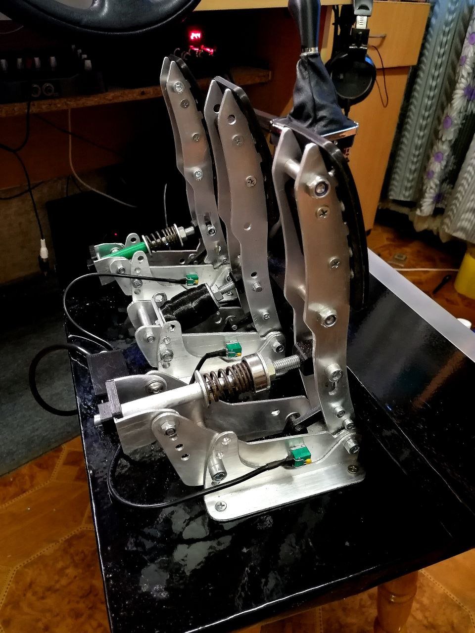 Педали изначально хотел делать твои , но вырезал лобзиком по фоткам Каравана , проблемы есть , не хватает подшипников , и нужно было все таки делать на лоадсел датчиках , так-же проблема найти пружины , видел у тебя в проекте используются инструментальные пружины , но что-то не могу найти такие-же , усилие на мм не совпадают с твоими