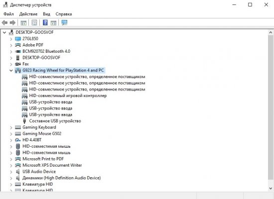 G-Hub руль видит, настраивает его, но настроек мало