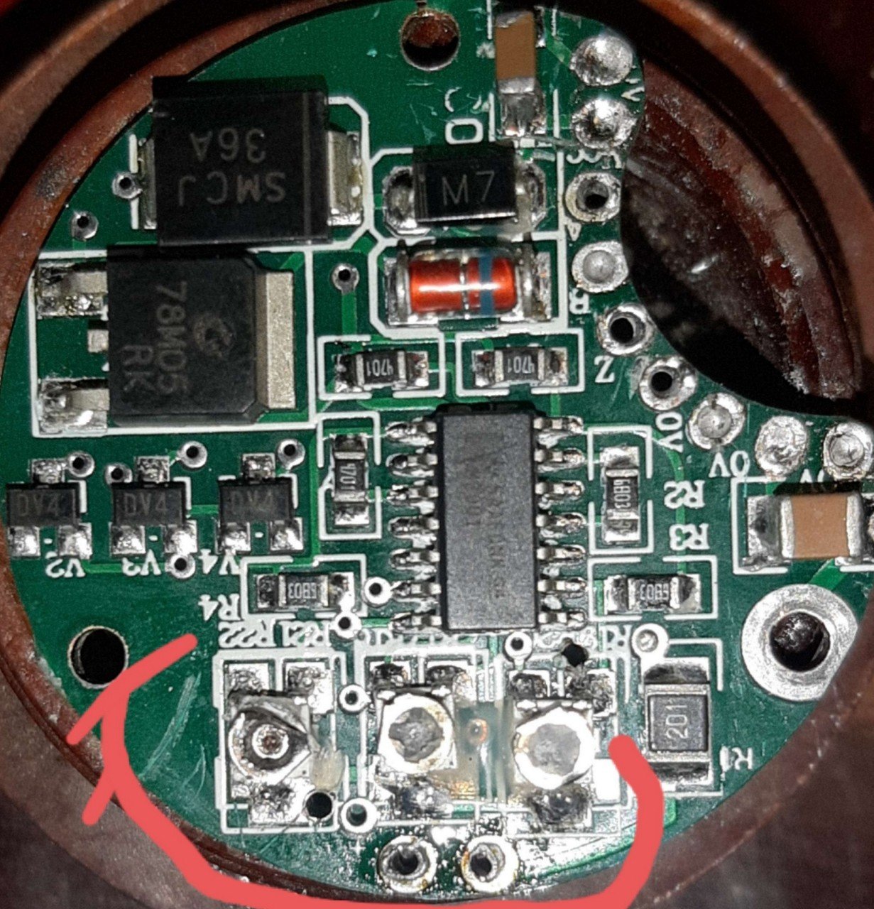 У тебя есть подстроечные резисторы? Но фото их не видно. У меня они были залиты полностью пришлось менять.