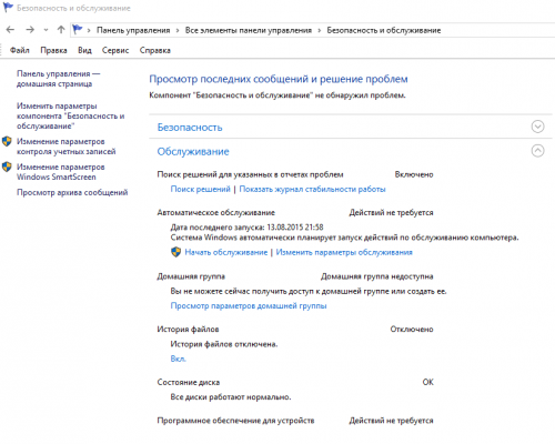 это ты видел здесь: панель управления - безопасность и обслуживание - изменить параметры обслуживания