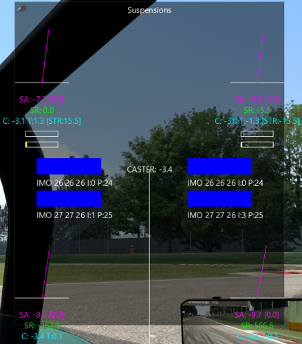 В АС рассчитывается только температура внутри шины, далее: больше развал - больше темпа внутренней части, она быстрее нагревается, а потом распределяется по всей шине. Цитата от разработчиков: В боксы уходить не обязательно, есть приложение которое показывает в реальном времени.