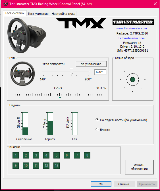 Добрый вечер. Столкнулся с данной проблемой. Педаль газа определяется как педаль сцепления, нужна помощь этого большого форума! С педалью тормоз все гуд. мои педали это заводские от базы Thrustmaster TMX