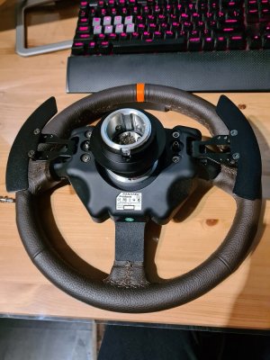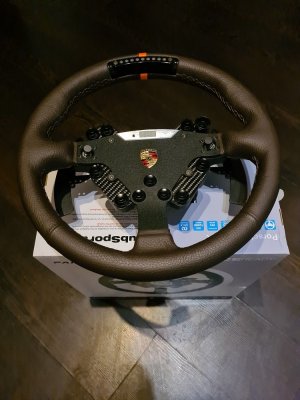 В связи со сменой платформы выставляю на продажу следующие продукты от Fanatec. Посмотреть картинки и купить можно на Авито по приложенным ссылкам. Fanatec DD1 Playstation edition Продается директ драйв база Fanatec Podium Racing Wheel F1. Комплект базы и штурвала F1, совместимый с PC, Playstation 4 и 5, а при подключении соответствующего руля и с современными приставками XBOX. Комплект был куплен мной новым в феврале этого года. Все в состоянии близком к идеальному, обычно использовал с другими "баранками", а комплектным штурвалом пользовался в общей сложности наверное не более десяти часов в перчатках, так что алькантара на нем без изъянов. В дополнение, в качестве подарка добавляю кнопку экстренного отключения, которая вообще говоря, продается отдельно за 100 евро и пожалуй главная ценность которой - в удобстве включения/выключения базы (не надо тянуться к задней стороне базы), а так же распечатанные на 3D принтере крепления для этой кнопки и блока питания, с которыми их можно прикрепить к алюминиевому профилю, если Ваш кокпит сделан из него. При необходимости работоспособность можно будет проверить у меня при покупке. Цена: 140.000 Ссылка на объявление на Авито Крепление для баз Fanatec DD Продается крепление для любых директ драйв баз Fanatec к кокпиту. Можно крепить к "круглой трубе" или алюмиевому профилю 40х80. Бу, но в отличном состоянии. В собранном виде держит крепко, как скала, а выглядит шикарно, как будто база летит на позолоченных крыльях. Если интересно, подробности и цену нового можно посмотреть на сайте fanatec. Цена: 15.000 Ссылка на объявление на авито. Руль Fanatec Podium Porsche 911 Руль Fanatec Podium Porsche 911 GT3 R. В пользовании около полугода, в перчатках. На замше видны следы использования (а по другому и быть не может), но ничего критичного. В остальном - в состоянии, близком к идеальному. Все коробки от комплекта в наличии. Цена: 45.000 Ссылка на объявление на Авито Накладка-штурвал для баттон-плейта Fanatec Если штурвалы от Fanatec Вам кажутся слишком маленькими, данный вариант "накладки" на фанатековский подиум баттон-плейт будет для Вас спасением. Заказал, но сам так и не воспользовался в связи со сменой платформы. Крепится на подиум баттон-плейт с лепестками и подиум хабом. По ощущениям - очень удобная и ухватистая, ну и конечно же Вы получаете экран и все богатство управления подиум баттон-плейта. Официальный Fanatec ничего подобного пока не предлагает. На всякий случай, для тех кто верит в чудеса: в продаже и за эту цену ТОЛЬКО сама накладка. Баттон плейт, лепестки и подиум хаб к нему приобретаются отдельно. Цена: 10.000 Ссылка на объявление на Авито