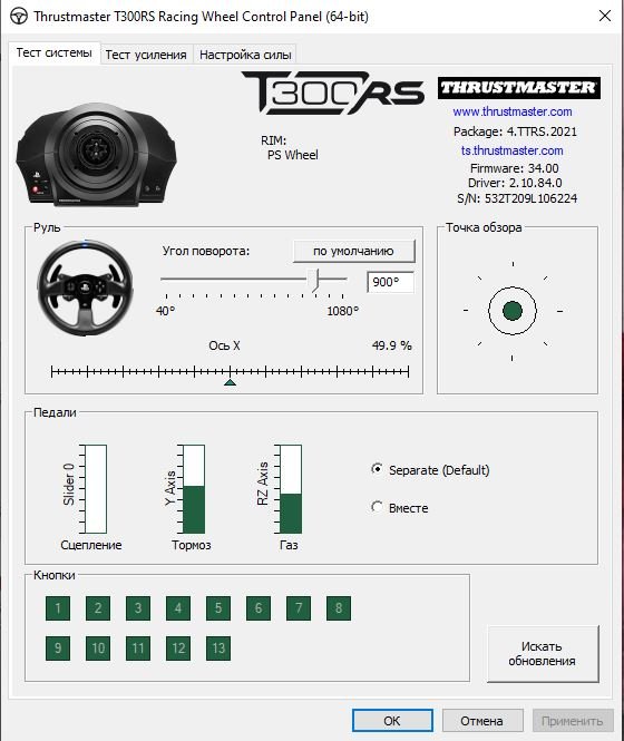 Слетела калибровка педалей T3PA из комплекта с T-GT. Проблема следующая: все три педали при полном выжиме показывают и работают тоже как 10%. Как лечил! Удалял с компа все, что связано с Thrustmaster, перезагружал, ставил заново. Обновлял прошивку самой базы T-GT(раза 3-4 уже). Результат один и тот же. Все три педали 10%. Ставил педали от базы TX, двухпедальные, тоже 10% на газе и тормозе. Педали T3PA с базой TX работают ОТЛИЧНО! Все три педали выжимаются и показывают 100%. Проблема НЕ в педалях. На ps4 база T-GT с педалями показывает тоже самое. 10% все три. Погонять можно только в Project Cars 2. Где эти 10% можно откалибровать как 100% и гонять. В других гонках GTS, Asseto Corsa, Dirt Rally, показывает минимальный выжим. И в самой гонке, как будто еле касаешься педалей. В сервис ДНС носил, НЕ помогли. Хотя ранее помогали, из-за корявых прошивок с другими базами Трастов(коряво встала прошивка на Т300 и на ТХ, восстановили). Кто сталкивался с таким, с педалями T3PA, ЛЮБАЯ база от Трастов, и 10%?