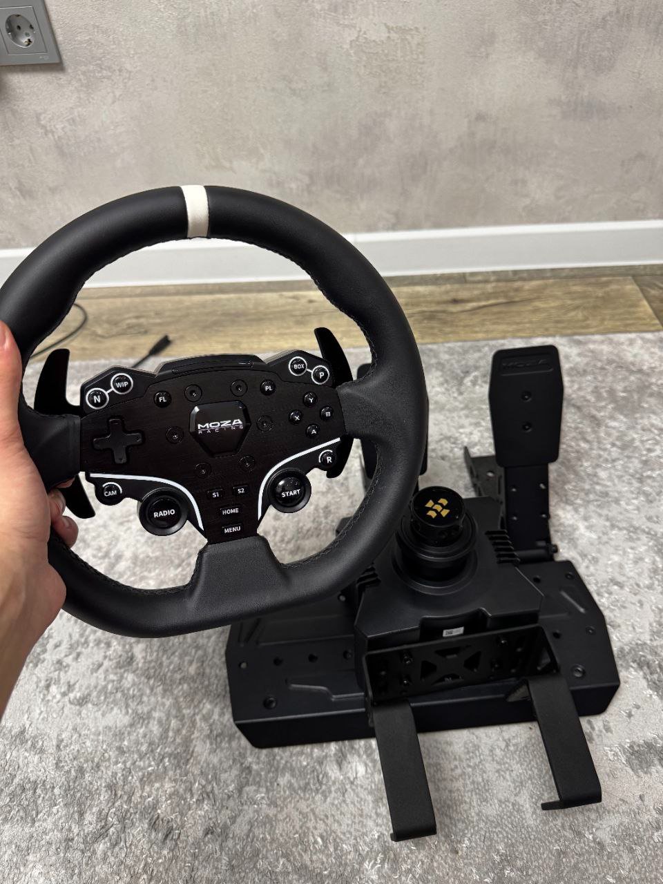 Гость n13nk Опубликовано 23 октября, 2024 Поделиться Опубликовано 23 октября, 2024 • База R5 V2 (rev 2024) • Руль ES • Педали SRP-lite • Струбцина • Провода, блок питания Идеальное состояние, полный комплект. Куплен 9 сентября, еще на гарантии. Накат 10-15 часов Moza R5 Bundle - идеальный вариант для симрейсера. База на 5.5 н.м с прямым приводом (никаких шестеренок и ремней) позволяет получить всю информацию от дорожного покрытия. Настройка всего и вся в Moza Pithouse. Угол поворота от 90гр до 2700гр. Moza это экосистема, можно постепенно менять баранку, педали, базу, есть куча аксессуаров к ним. Баранка обшита кожей, все остальное выполнено из авиационного алюминия. Отдельно ничего не продаю Цена 32 000₽, отправка ТК СДЭК из Воронежа за ваши деньги. Ссылка на комментарий