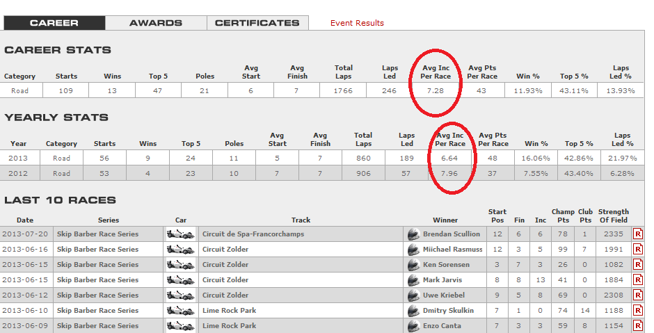 Stas Опубликовано 8 сентября, 2013 Поделиться Опубликовано 8 сентября, 2013 У тебя среднее количество инцидентов за гонку 8, что явно перебор. Должно быть 3-5. Ссылка на комментарий