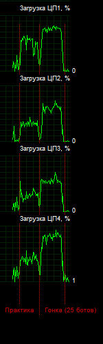 Andrey Varlamov Опубликовано 2 февраля, 2014 Поделиться Опубликовано 2 февраля, 2014 У меня на 2600K/4.9GHz в случае связки Abarth/Monza ситуация следующая: Frames: 16157 - Time: 120000ms - Avg: 134.642 - Min: 110 - Max: 157 (одиночная практика) Frames: 9974 - Time: 120000ms - Avg: 87.283 - Min: 56 - Max: 108 (гонка, 25 ботов) Нагрузка на ЦП с ботами и без сильно отличается? У меня на свзязке Imola/Z4 с 11 ботами загрузка по ядрам меньше 90%, видео ~90%, но FPS тоже прилично проседает, а через пару кругов начинаются фризы без снижения FPS, зато время кадра начинает прилично "пикировать". Ссылка на комментарий