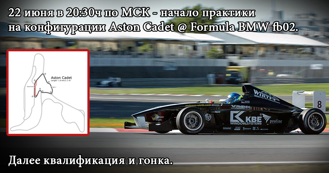 Audi TT Опубликовано 19 июня, 2014 Автор Поделиться Опубликовано 19 июня, 2014 Попробуем еще раз :hooray: Сервер запущен круглосуточно. Дата/время - 22.06.2014 / 20:30ч по МСК Трасса – Aston Cadet Погода – облачно, вечер; ветра нет Обязательный пит-стоп – не требуется Вход на гонку – разрешен Автомобиль: Formula BMW fb02 Название сервера - audi fun race Пароль - ascad2014 Формат события: Практика – 30 мин Квалификация – 15 мин Гонка – 35 кругов Организатор - [Audi TT] Ссылка на комментарий