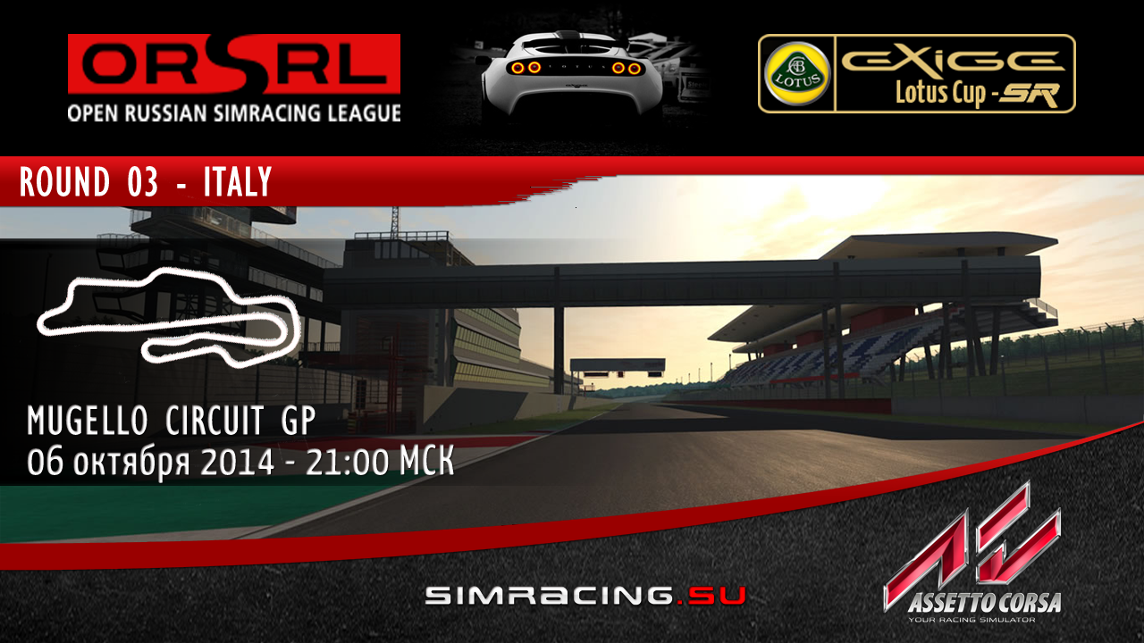 Aslambek Опубликовано 2 октября, 2014 Поделиться Опубликовано 2 октября, 2014 Третий этап чемпионата LOTUS CUP SR 2014 на базе игрового симулятора Assetto Corsa. Чтобы принять участие в этой гонке и далее в чемпионате, вам необходимо быть зарегистрированным на orsrl.net, если вы вас там нет - зарегистрируйтесь и заполните в профиле своей учетной записи: Имя и Фамилия, указав данные под которыми вы выступаете в Assetto Corsa. Внимание: Использование ников запрещено. Информация о гонке: Регистрация на этап происходит через хотлап соревнования, максимально допустимое количество пилотов на этап 24. Пилоты показавшие время на круге в хот лап соревновании медленнее 24 места на этап не попадают. [spoiler=Как залить повтор] 1. Проехать быстрый круг, сохранить повтор пройденного вами круга (вырежьте именно тот круг на котором показали свои быстрые секунды) необходимые инструменты есть в самой игре. ВАЖНО!!! К сохраненному кругу в игре добавьте расширение rpy , т.е. загружаемый вами файл выглядит так: S.Gorbunov 2 31 217.rpy (называть можете как угодно) 2. На сайте orsrl.net в вкладке регистрации на этап – укажите время пройденного круга и залейте повтор подтверждающий показанные секунды. Обновлять время (заливать повтор) можно не ограниченное кол-во раз пока идет отбор. Хот-лап отбор Дата начала: 02 октября 2014г. Дата и время окончания: 06 октября 2014г. - 18:00 (МСК) Временной ориентир на данной трассе около 2 08 xxx Рекорды трасс в ходе всего чемпионата удобно смотреть на RSR LiveTiming - по ссылке времена выбранного нами авто и трассы. Официальный этап для пилотов прошедших хот-лап отбор дата: 06 октября 2014 года (понедельник) время открытия сервера: 20:00 МСК сервер гонки: LotusCup2014 - SimRacing.su пароль сервера для практики: 2014 пароль сервера в день гонки: будет виден зарегистрированным пилотам, после закрытия регистрации трасса: Mugello circuit GP автомобиль: Lotus Exige 240R - модификация S3 формат: открытая практика, открытая квалификация, гонка максимум пилотов: 24 практика: 60 минут Сессия №1 квалификация: 15 минут (начало 21:00 МСК) гонка 1: 25 минут (начало 21:15 МСК) Сессия №2 квалификация: 15 минут (начало 21:45 МСК) гонка 2: 25 минут (начало 22:00 МСК) старт: с места настройки: открытые Вид: любой Доступные помощи: по своему усмотрению Ссылки на контент : Assetto Corsa в steam Полезные ссылки Основной Регламент чемпионатов по игре Assetto Corsa Регистрация в чемпионате - Выбор номера машины для участия Домашняя страница чемпионата Список пилотов Список команд Система чемпионата Общее количество штрафов Турнирная таблица чемпионата Координаторы соревнований: Станислав Горбунов (Aslambek) - организация соревнований Алексей Свиденцов (HectoR) - технический специалист (всё что связно с работой сервера и игры Assetto Corsa) Главный судья Андрей Рудей (AndrewR07) http://www.youtube.com/watch?v=QWK6JngDqGg Ссылка на комментарий