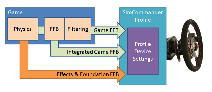magicm3n Опубликовано 1 мая, 2016 Поделиться Опубликовано 1 мая, 2016 (изменено) Ну, я ж написал, всегда запускаю сим из симкоммандера. То есть ффб на руле идет через обработку симкоммандером. В этом случае в иРе, например, игровые настройки ффб становятся вовсе недоступными. Это само собой. Я о другом. Там есть разные пути получения фитбека. Впринципе я еще пару раз перечитал и разобрался. Вот наглядная картинка: Первый путь "Game FFB" отбрасываем, нас он не интересует. Это всё-равно, что запуск иР без симкомандера. Второй путь "Integrated Game FFB" - Это то, что включено по умолчанию. Тоесть фактически симкомандер тоже берет игровой фитбек, но без микса, без игровых фильтров, а уже сам "готовит" финальный фитбек. За это отвечает настройка в миксере "Game Force Feedback" Третий путь "Foundation FFB" - симкомандер игнорирует фитбек, который генерирует иР, а используя плагин в реалтайме берет все данные о происходящем с автомобилем в иР и самостоятельно генерирует фитбек. За это отвечает настройка в миксере "Steering Foundation Feedback" Второй и третий пункт можно также использовать совмесно, симкомандер будет микшировать используя все данные. И четких рекомендаций нет, кроме как "если игра даёт хороший фитбек, можно использовать второй путь, если игра дает плохой фитбек, лучше использовать третий, но если есть поддержка (иР работает), а так же можно использовать оба сразу" Тут нужно поэксперементировать. Ну и естественно, для каждой машины и даже для каждой трассы можно создать свой профиль с разными настройками, это вообще круто :) Изменено 1 мая, 2016 пользователем magicm3n Ссылка на комментарий