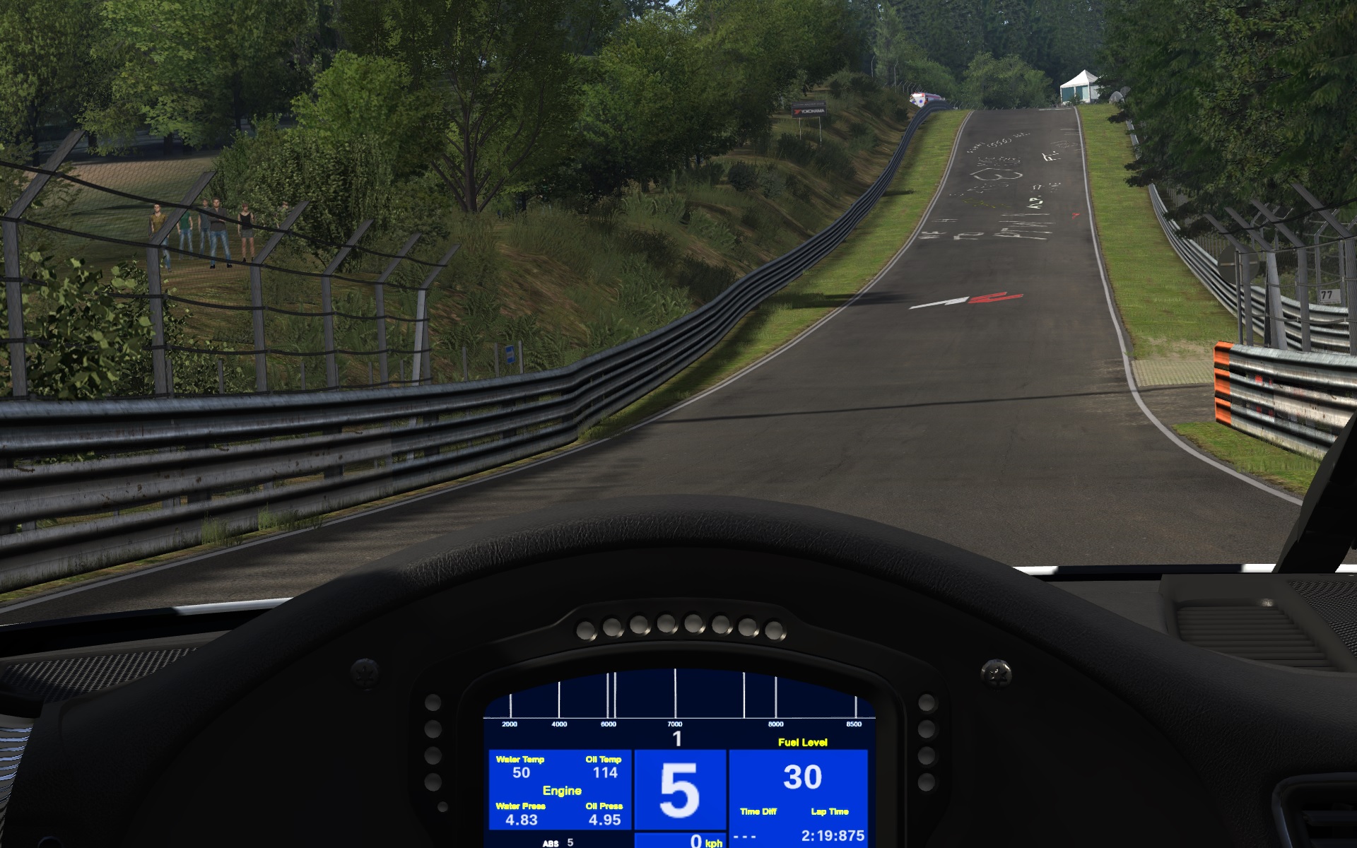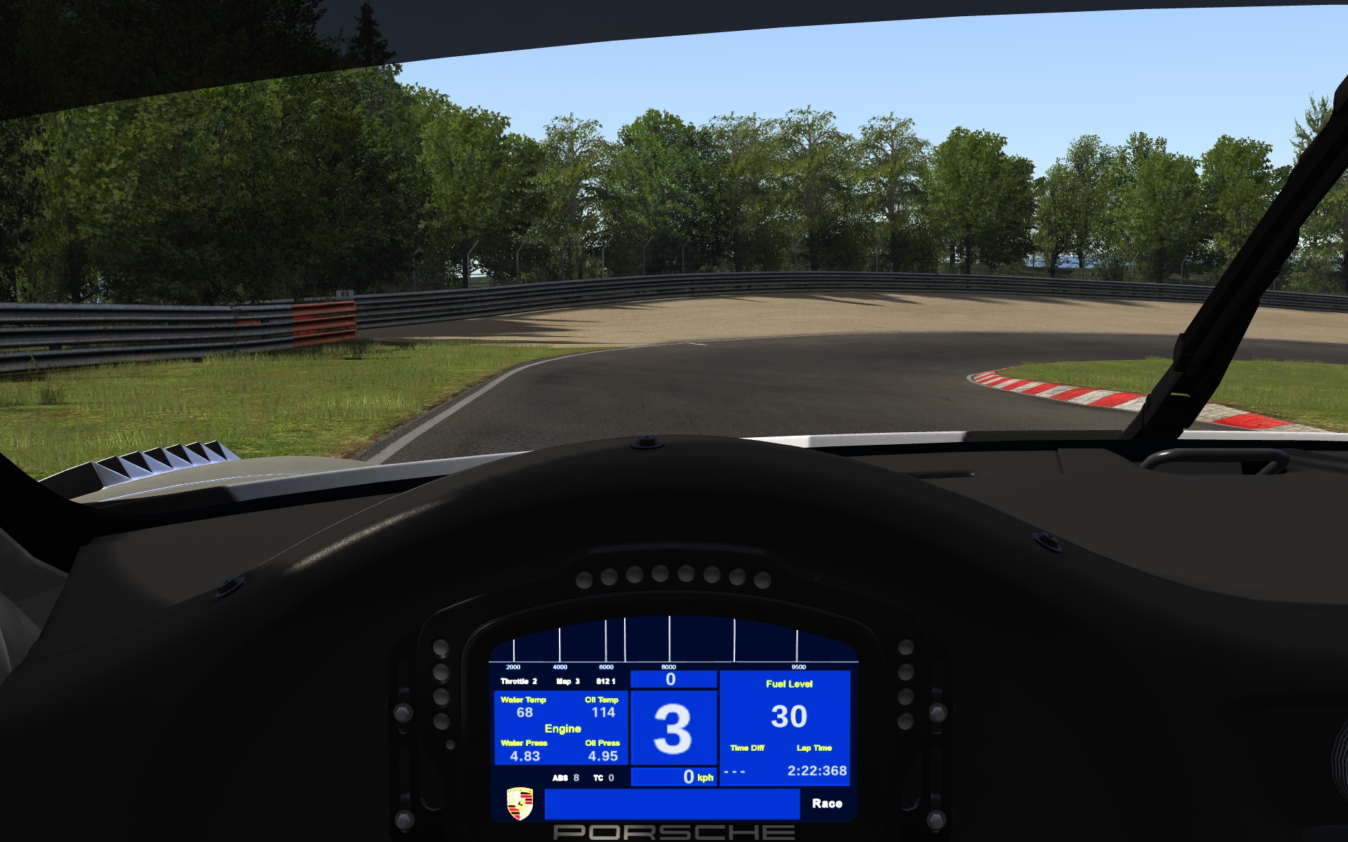 А вот B и C воспринимаются не слева и справа, а немного позади меня... Это тоже неправильно. Я все время промахиваюсь мимо апексов и наезжаю на кербы где не надо. Габаритов не чувствую..