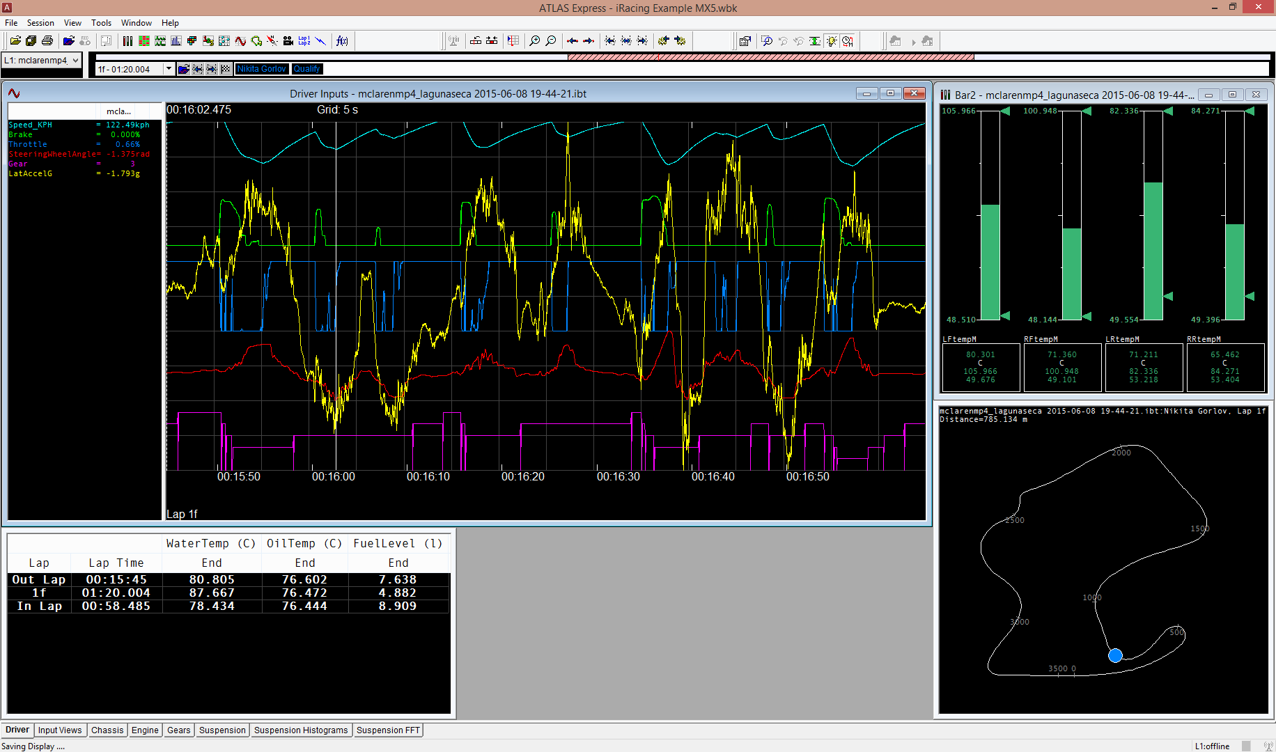 VVZ Опубликовано 8 июня, 2015 Поделиться Опубликовано 8 июня, 2015 Жми Alt+L и кидай файл сюда. Жми перед заездом для начала записи, и еще раз в конце. \Documents\iRacing\telemetry Вот файл. Проехал так себе, можно ещё где-то секунду снять. Сейчас время, если не ошибаюсь, 2.20.9.Ради прикола прокачусь на Лотусе 49 в АС. Ссылка на комментарий