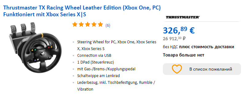 SabitOff Опубликовано 29 ноября, 2021 Поделиться Опубликовано 29 ноября, 2021 (изменено) Всем привет) Возвращаюсь в гонки спустя год Можете меня поздравить))) После продажи T300 Ferrari, решил порадовать себя к НГ и дню рождения. Самая дорогая разовая покупка для меня, за последние лет 5 наверное) Со всеми пошлинами и доставкой вышло 574 евро. Заказал: Thrustmaster Open Wheel Add-on Thrustmaster T-LCM Pedalset Thrustmaster T300 Racing Wheel Servo Base Если учесть с ценами в Мск и отсутствии той же баранки, то цена вполне себе отличная) по рублям вышло 52 тысячи. Теперь жду Изменено 29 ноября, 2021 пользователем SabitOff 1 Ссылка на комментарий