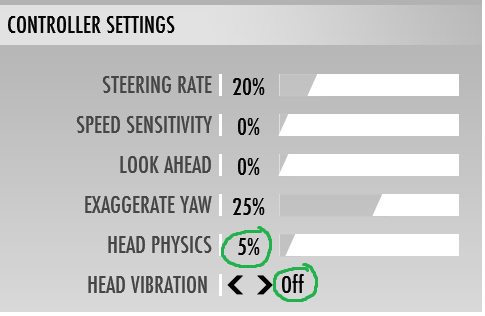 GranDoxin Опубликовано 26 февраля, 2016 Поделиться Опубликовано 26 февраля, 2016 Да мне видео что бы записать и выложить - это целая история.. Я как то пробовал фрапсом - гигантские файлы получаются по размеру.. С наклонами головы я таки разобрался.. сам нашел в player.JSON Дело было в параметре "Head Rotation": Выставил в ноль - стало нормально. В настройках у меня exagerate yaw полностью убран.. Вибрацию тоже выключил. А вот HEAD Physics пришлось побольше включить - на 30. Мне больше с полностью отключенной нравится, и я бы так и ездил, но получается тряска горизонта.. так у меня фов 45... Тебя при таком маленьком ФОВ не партит то, как картинка (горизонт) трясется? В общем с тряской и кренами вопрос решен. Попробуй на оригинальном изивском контенте и вообще отключи, как на скрине. У меня ни малейшего изменения на перегрузки. Так сим чистый. На исвском контенте и тестирую. Конкретно на Ф3 исторической. Но как уже написал - дело было в параметре см. выше. Ссылка на комментарий
