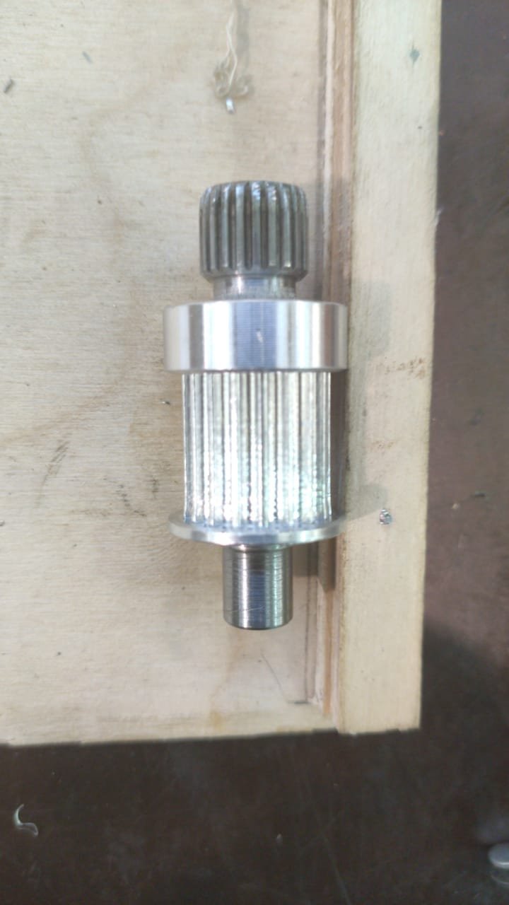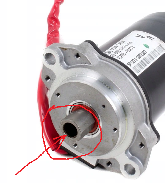 У этого двигателя на валу была втулка с внутренним шлицем, а к ней ответная часть червячной передачи с внешним шлицем. Вот эту ответную часть пришлось расточить под отверстие шестерни и напрессовать на нее шестерню с натягом.