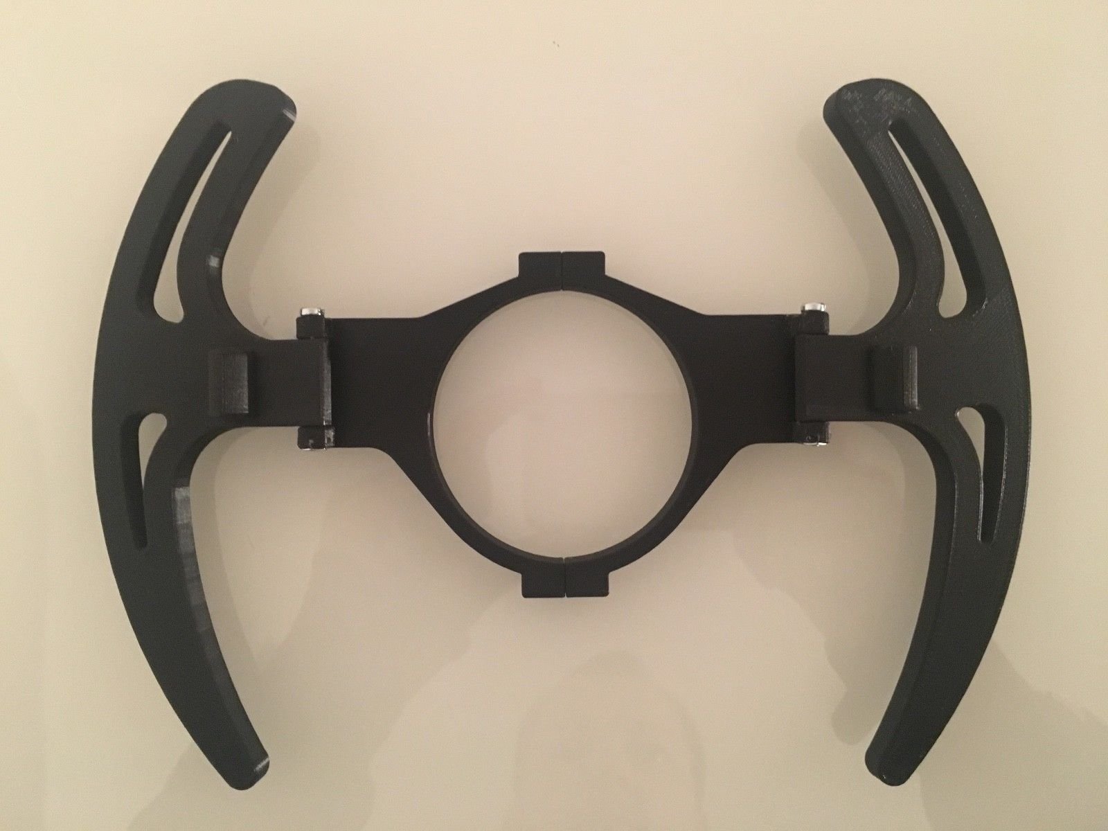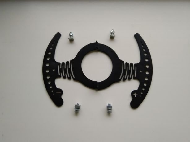 В общем, два верхних лепестка - нужные, снизу не знаю откуда взялся и убрать его у меня пока нет технической возможности) Сразу предупрежу, что использовать это дело можно только на свой страх и риск! В теории все подходит, на картонной модели тоже все подходит. Как будет с металлом - не знаю. По центру отверстие - через него нужно вставить болтик прямо в руль, чтобы лепестки не съезжали. На самих лепестках по 1 отверстию - тоже, скорее всего, для болтиков, чтобы ими нажимать на родные кнопки. Для скрепления между собой, необходимо загнуть края с отверстиями и скрепить понятное дело чем :)  У меня кстати и фото готового изделия есть, которое мне так и не отдали. Сталь 3мм, выполнен на фрезеровочном станке. Понятия не имею, как они будут нажиматься, и можно ли это вообще заставить работать...