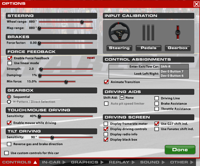 s1amdrom Опубликовано 1 мая, 2013 Поделиться Опубликовано 1 мая, 2013 Нужна помощь,сейчас начал гонять на скипе.Я видел,что тут люди гоняют с силой 20,а то и выше.У меня же стоит на 2,при всем при этом руль тяжёлый,фидбек достаточно сильно ощущается,к слову на форде такого не было. Может я чего не понимаю,но гляньте плиз мои настройки в игре.В профайлере все как обычно: сила на 100,сприн 0,дампер 100. Ссылка на комментарий