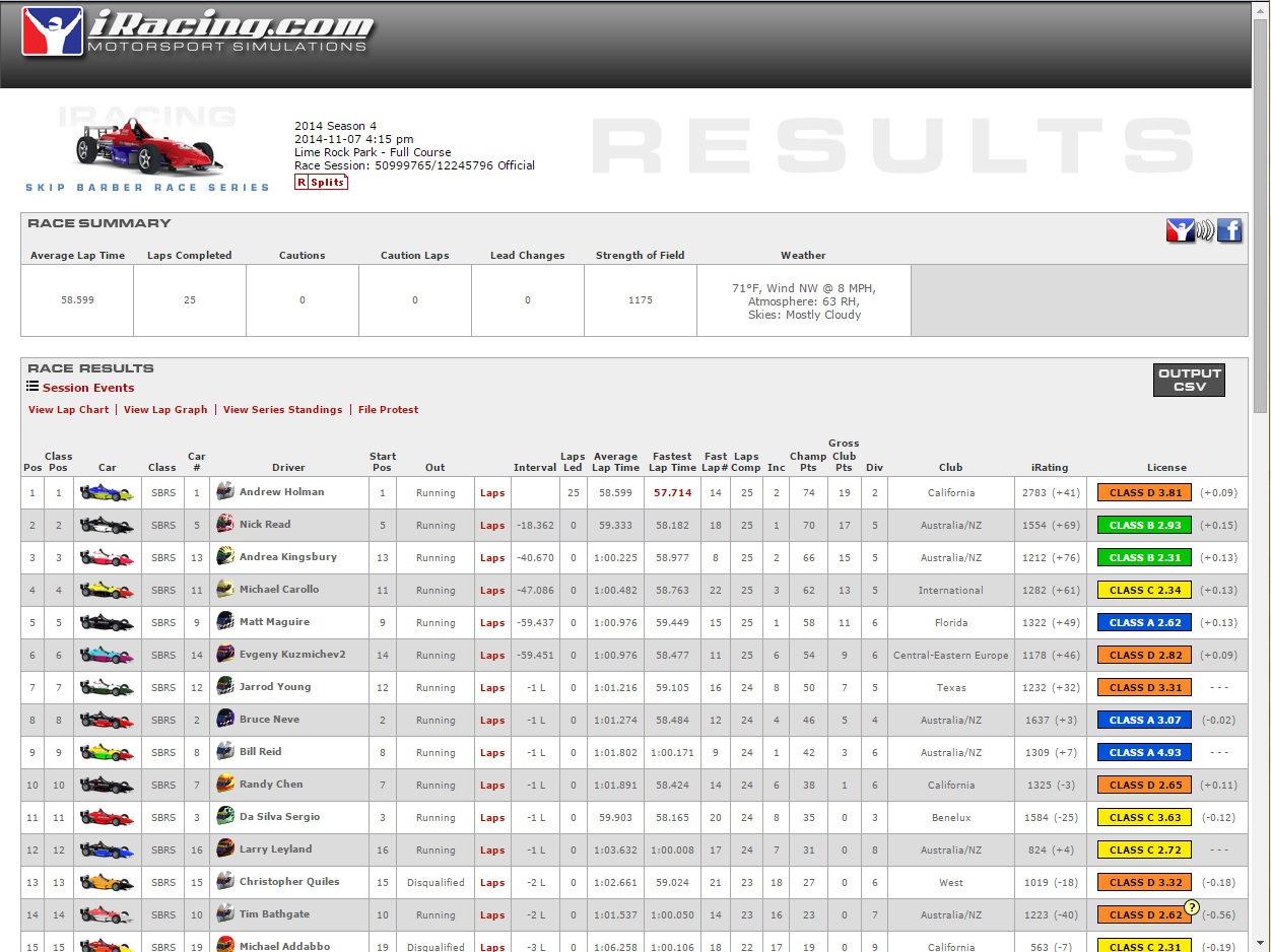 Гонку тренировать нужно в практике, а не в гонке:) Заходя уже в гонку, ты должен быть готовым биться из последних сил, знать как твоя машина поведет себя, если ты поедешь не по квальной траектории и тд. И все это уже должно быть накатано перед гонкой:) У тебя нормальная скорость, но видно что стабильности(наката) не хватает.