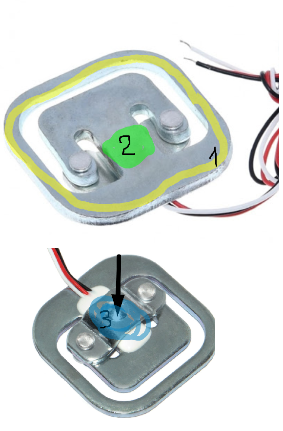 в класической схеме тензодатчик упирается рамкой 1 в проверность (опору)