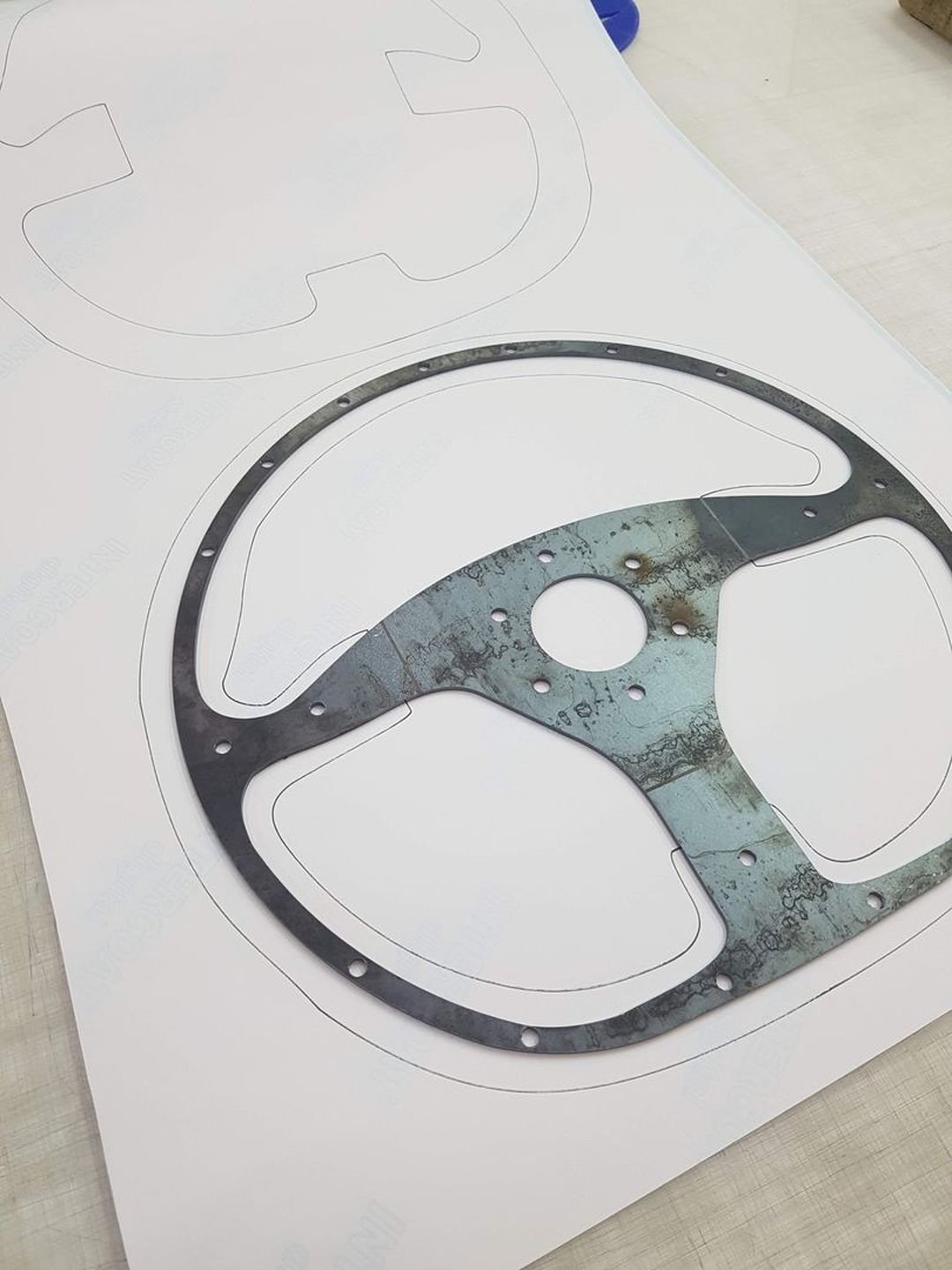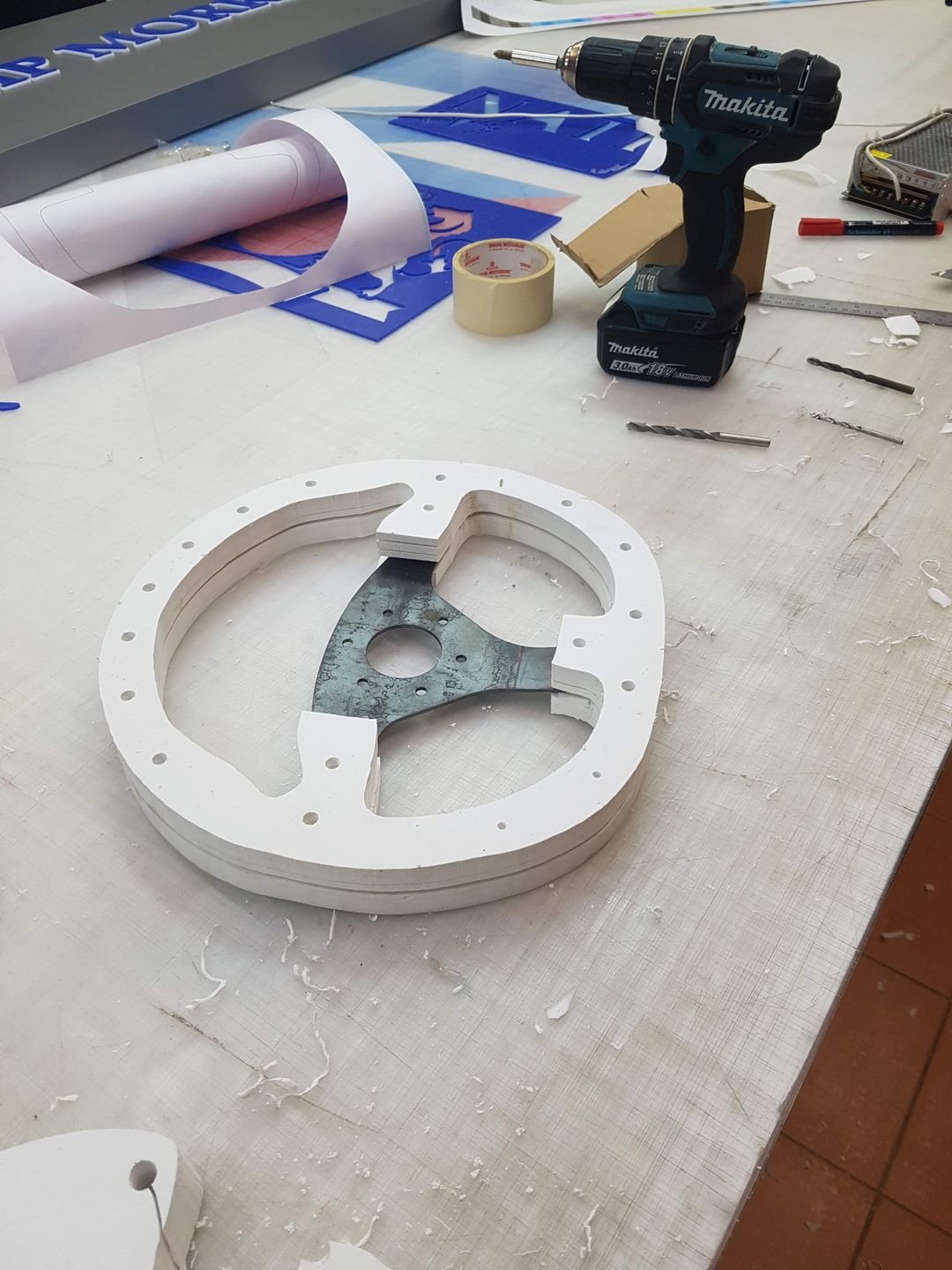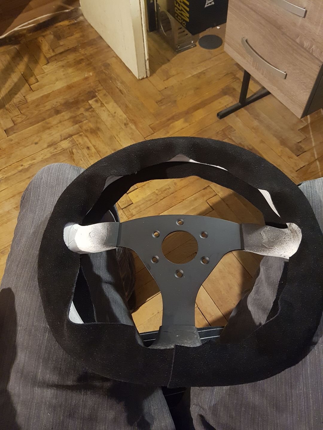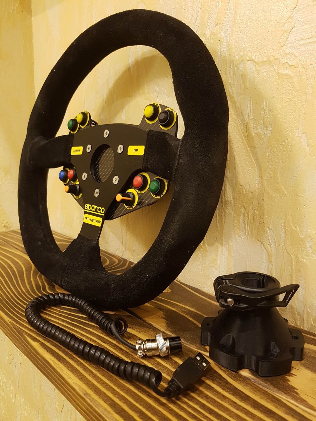 lenynnn Опубликовано 26 декабря, 2020 Поделиться Опубликовано 26 декабря, 2020 Приветствую! Представляю вашему вниманию своё поделие. ) После начала изысканий, по созданию самодельной ДД базы, естественно потребовалась баранка для неё. Из-за всей этой ситуации с карантином, оказалось не так-то просто найти готовую баранку для проекта, и было принято решение изготовить её с нуля. Судя по фото, основа этого руля - баранка Sparco L360. От неё и плясал в размерах и форме. Каркас - сталь 3мм, резаная на лазере, и гнутая вручную, обод - ПВХ, обтянутый натуральной замшей. Пластина с кнопками - чёрный акрил 3мм, резаный на лазере и оклееный "карбоном". Крпус и шифтеры - 3Д печать, лепестки - сталь 2мм. Электроника - STM32 bluepill+freejoy. Прикладываю кучу фото, без комментариев - думаю весь процесс будет понятен. Ссылка на комментарий