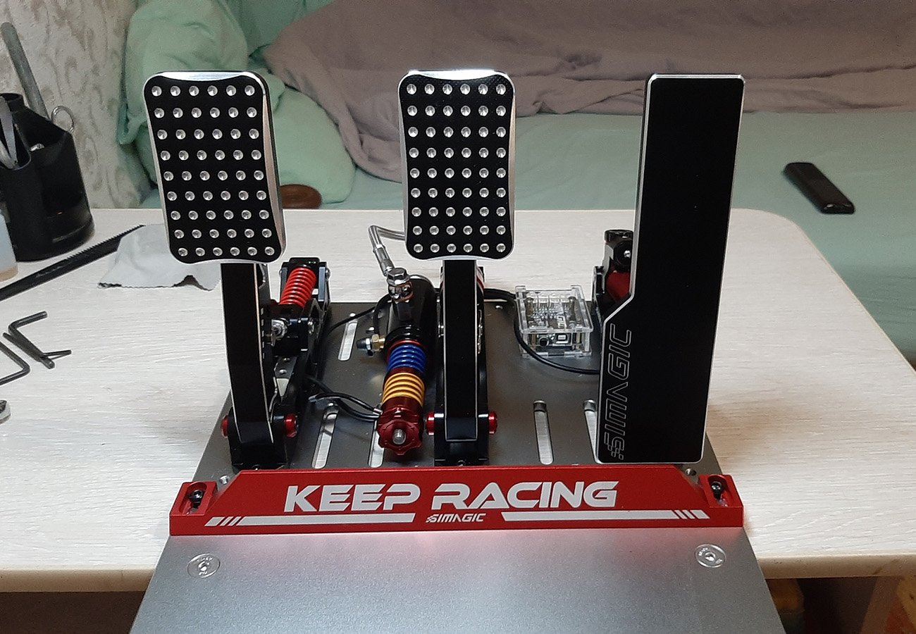 JohnDoe Опубликовано 2 августа, 2022 Поделиться Опубликовано 2 августа, 2022 Новую тему создавать не хочется, черкну тут пару слов про доехавшие до меня педали Simagic P2000. Очень высокое качество изготовления, простая сборка, удобные настройки с приличным диапазоном, хороший выбор опциональных пружин. Педальные накладки, на мой вкус, идеальны по размеру и форме. В качестве приятного бонуса доложили упор (хотя надпись на нём лишняя). Тормозной блок в первую очередь понравился удобством настроек — без проблем получилось подобрать усилие и ход (на своих CSP я в свое время умучился подбирать «правильный полиуретан»). Схема «гидравлика плюс пружины» ощущается немного иначе, чем эластомеры — в целом приятно, но какого то «откровения», как и ожидалось, там нет. Блок акселератора тоже специфичный. Гидравлический «лифт» с возможностью регулировки демпфирования — и мне эта опция неожиданно понравилась. Но есть подозрение, что со временем может возникнуть проблема «закусывания». Блок сцепления классический, на пружине, но «эффект корзины» реализован довольно элегантно — без избыточного «навесного конструктива». Ход несколько длинноват и не регулируется. Из минусов — отсутствие регулировки наклона и хреноватая «оплётка» кабелей. Софт абсолютно вменяемый. 4 Ссылка на комментарий