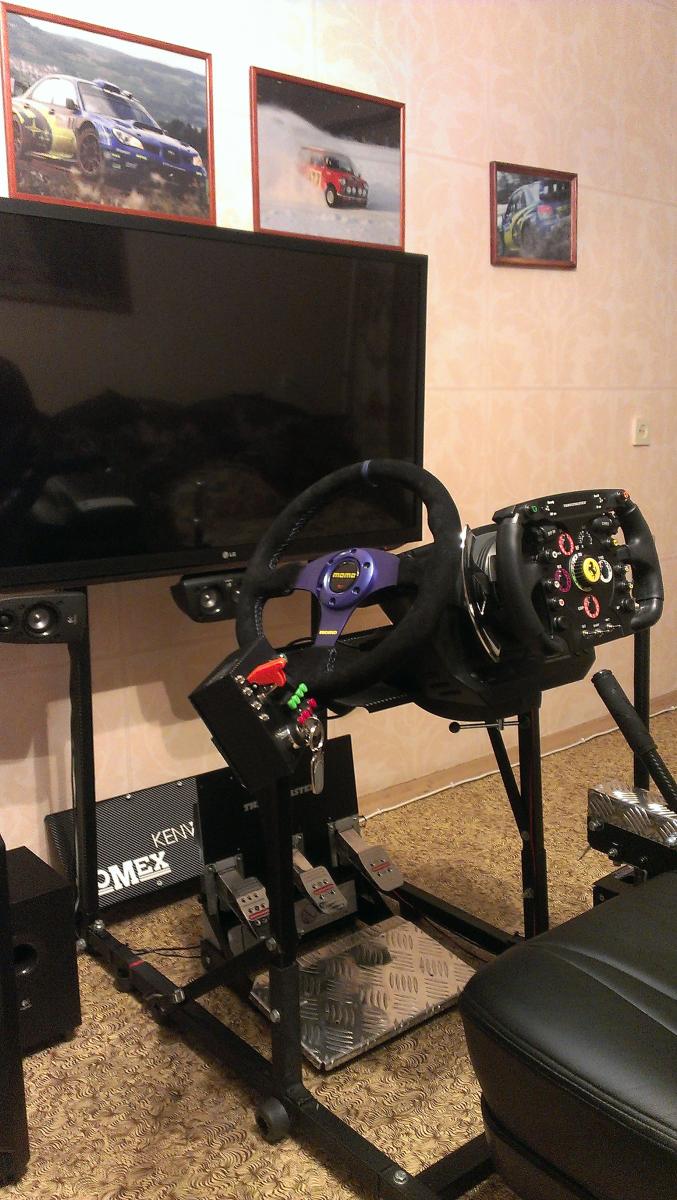 Популярный пост DimaTonkonog Опубликовано 5 июня, 2013 Популярный пост Поделиться Опубликовано 5 июня, 2013 (изменено) Ребята привет! :rolleyes: Решил Вам показать свое небольшое увлечение, может найти товарищей по интересам! Пол года назад построил "кокпит" - сложность заключалась в том что построить нужно было без сварки, но получилось - кресло использовал от Волги 029. Докупил со временем чехол из "кожи аригон" - из твердого поролона усилил боковую поддержку - чтоб "не выбрасывало во время гонки"). Со временем построил ручник, и секвентальную коробку, - оба были подпаяны к рулю logitech g 27. Следующим решил сделать buttonbox, - за основу короба пошел старый БП - уменьшенный в размерах, плата была взята из usb геймпада совместимого с пк и пс3. Не так давно пришла идея сделать универсальный контроллер, - который может подходить не только на мою установку но и на столы и установки отличные от моей(тот который на видео). Не давно завершил - сейчас тестирую, в отличии от своего первого шифтера - усилил пружины, тумблера поставил без фиксации, можно использовать горячую замену рычага, ну и решил проблему с креплением - добавив струбцины. Сейчас в планах разработать и сделать максимально надежный, недорогой и универсальный ручник и шифтер так же с универсальными креплениями. Очень хочется снизить себестоимость не потеряв в качестве и внешнем виде.Надеюсь получится!=) Если Вас что то заинтересовало, или что нибудь можете посоветовать буду очень рад пообщаться! :rolleyes: Еще совсем недавно по воле случая, удалось приобрести совсем новенький из магазина Enter руль T500RS Ferrari F1 всего за 8800 :good:. Он оказался единственным и последнем в сети. Сейчас потихоньку вкатываюсь в F1, и ломаю голову(( как намутить переходник для новокупленного МОМО - за 800 руб кстати. Вот такая моя история :rolleyes: По поводу гонок - катаюсь почти во все что не вызывает отвращения) http://www.youtube.com/watch?v=twIgozqaXTY Изменено 5 июня, 2013 пользователем DimaTonkonog 21 Ссылка на комментарий
