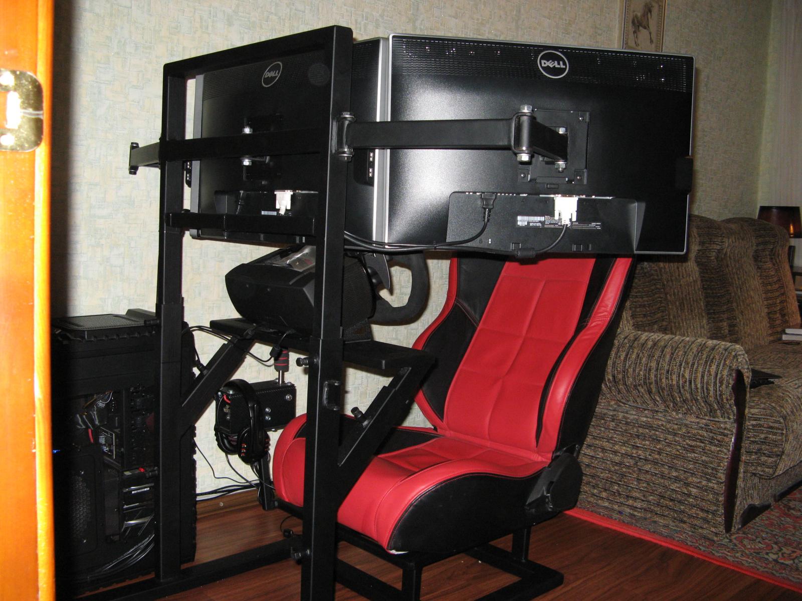 Gorek68 Опубликовано 28 декабря, 2013 Поделиться Опубликовано 28 декабря, 2013 (изменено) Занимаюсь посторойкой нового кокпита, пока всё находится в зачаточном состоянии. Сегодня пришлось это зачаточное состояние притащить домой с целью примерки(наметить дырки для педалей и кресла, промерять точное растояние установки руля и т.д) Вот единственное, с чем зашел в тупик, так это с раположением центрального монитора. Никак не могу определиться, на каком растоянии от руля его запланировать, перелопатил кучу фотографий, но так и определился с этим. Кто-то ставит прямо за рулевой базой, у кого-то вообще над ней. Может кто посоветует, как лучше сделать? Пока это выглядит так. Изменено 28 декабря, 2013 пользователем Gorek68 1 Ссылка на комментарий