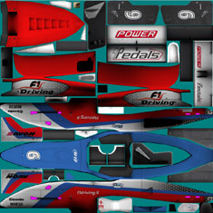 Наиболее важной частью является файл "Skin_001.tga" (для Formula1600, Formula1800 и FTarget) или " F-R_Skin_001.tga" (для Formula2000). Это двумерное изображение раскраски экстерьера вашего болида: