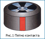 Давайте прежде всего выясним, чем автомобиль "держится" за дорогу. Это пятно контакта - отпечаток рабочей поверхности шины на покрытии трассы, размером с книгу небольшого формата (рис. 1). Всего их четыре. Естественно, чем больше пятно контакта, тем лучше сцепление, но размер шин ограничен техническими требованиями.
